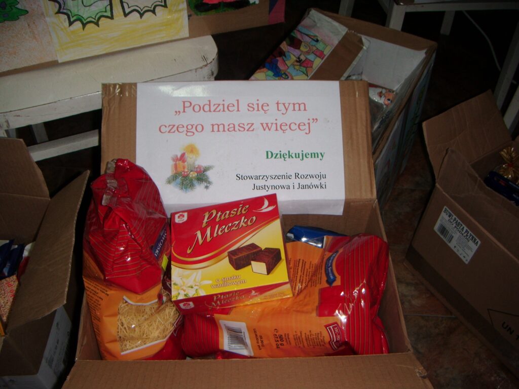 Po raz kolejny uruchomiliśmy przedświąteczną akcję charytatywną “Podziel się tym czego masz więcej”. Polega ona na zbiórce artykułów – głównie spożywczych – w wybranych punktach handlowych na terenie Justynowa i przekazaniu ich rodzinom w potrzebie.