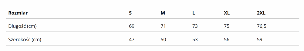 Tabela Rozmiarów Koszulek